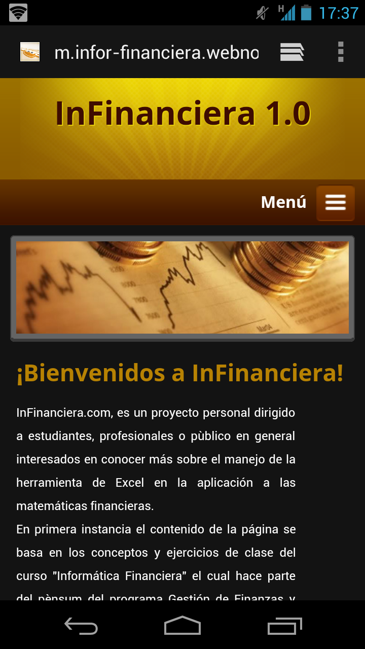 InFinanciera.com, es un proyecto personal dirigido a estudiantes, profesionales o pùblico en general interesados en primer lugar en conocer más sobre el manejo de la herramienta de Excel en la aplicación a las matemáticas financieras y en segundo lugar en conocer sobre noticias e indicadores economicos de Colombia y el mundo.