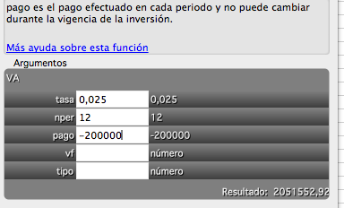Podemos ahora identificar que tenemos 12 periodos comenzando desde cero ya que tenemos una tasa efectiva vencida.